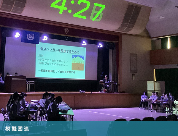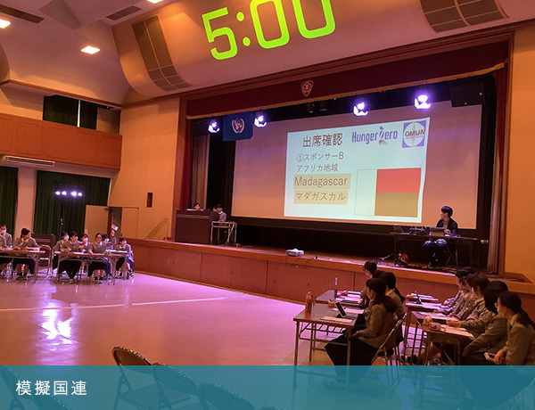 Yさん1学期にくじ引きで担当する国を決め、その国の課題や理想とする他国との協力関係についてリサーチし、3学期の最後に飢餓のない世界の実現をめざす「ハンガーゼロ」をテーマに模擬国連を開き、決議を目指しました。私はインドの国連代表のチームでした。