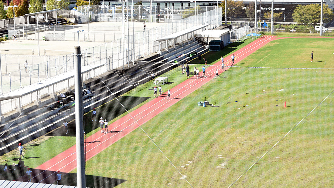 中学と高校の体育大会は、もちろんこの総合グラウンドで開催。さらに、ナラトミにはもう一つ、学園の幼稚園・小学校・中学校・高校が一緒に行う合同運動会があります。集まる園児と児童、生徒の総数は1,000人を超える規模。全員が集合してもなおグラウンドにゆとりがあるので、「やっぱり、この広さはスゴい!」と毎年感心させられます!