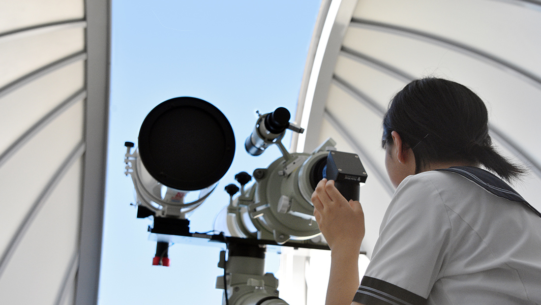 天体が好きな生徒も、まだ興味がない生徒も、天体観測ドームの巨大な望遠鏡で星を眺めれば、神秘的な夜空とそのスケール感に誰もが魅了されます。私が初めてここで星を観たのは小学4年の時。望遠鏡を通すと、地球から遠く離れた月も本当に手が届きそうなくらい間近に感じられます。