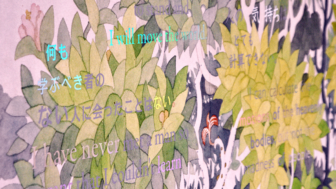 - 「言万葉の絵樹」の言葉は、角度で見え方が変わるホログラム!