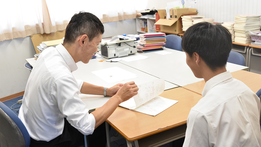 僕も実際に、これまで何度もここで先生といろいろな話をしてきました。定期考査が終わったタイミングであれば勉強のことを中心に話し、それ以外でも、先生のほうから普段の生活や趣味のことなど、気軽に尋ねてくれます。教員ステーションがあるおかげで、先生との距離がとても近く感じられます。