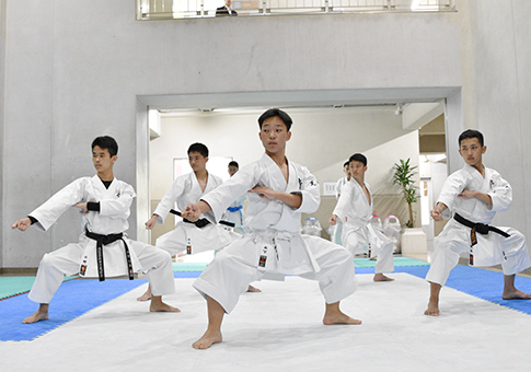 指導で心がけているのは、「強くなるだけではなく、人として成長させること」です。礼儀や思いやりを大切にし、誰もが役割を持ってクラブを支える仕組みにしています。特定の上手な生徒が引っ張るのではなく、全員がそれぞれの持ち場で責任を果たすことで、空手道部全体の強さにつながると考えています。また、途中入部や他クラブからの転部も歓迎していて、一度挫折を経験した生徒たちが、自分のペースで力を伸ばし、「もう一度頑張りたい」と思える場所であることも、空手道部の大切な役割です。