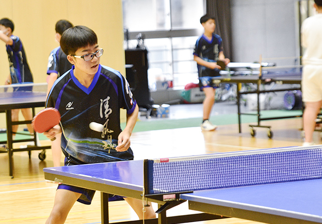 朝7時10分に始まる卓球部の練習。早朝であることを忘れてしまうほど、練習場は生徒たちの活気で満ちている。部員は試合のレギュラーとなれる上級者とその他のメンバーに分かれ、それぞれの課題に取り組むが、月に一度の「部内戦」で、学年に関係なく実力を身につけた強者は上へ行ける。反対にレギュラー外になることもあるため、部員たちは試合はもちろん、この「部内戦」も励みに日々練習に励んでいる。顧問や全日本大会出場経験をもつコーチからの指導を受けながら、基礎を疎かにせず黙々と鍛錬を重ねる姿が印象的だった。