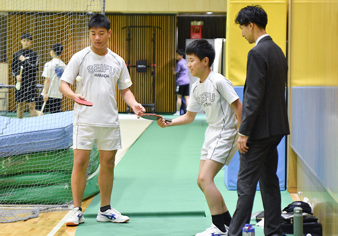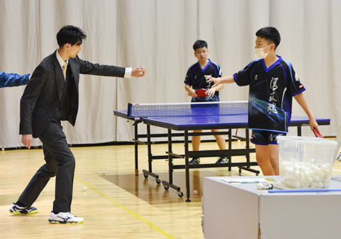 また卓球部は、他の運動部が合わず、悩む生徒の受け皿にもなっています。朝練によって生活のリズムが整い、成績が向上する生徒も多く、国公立大学に進学する部員も少なくありません。途中入部も歓迎していて、それぞれのレベルに合わせて丁寧に指導しています。