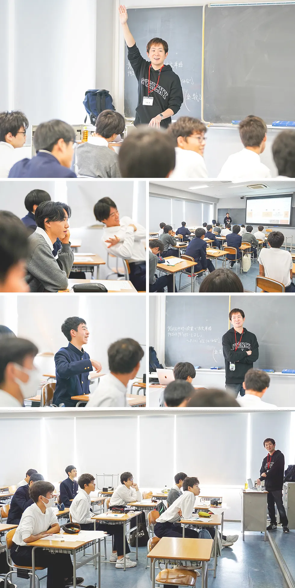他にも、地球環境を守りたいという想いを仕事にどう結びつけるかを、野村総合研究所や国連機関、環境NGOなどでのキャリアを通じて紹介した日比さん。商社の仕事をゲーム感覚で体験させた嶋田さん、観光業を通じた地域貢献を熱く語った田村さんなど、さまざまなキャリアや想いを持つOBが、甲南ボーイを刺激したワークショップ。OBが抱く母校愛が後輩に火をつけて道を示す、甲南ならではのイベントでした。