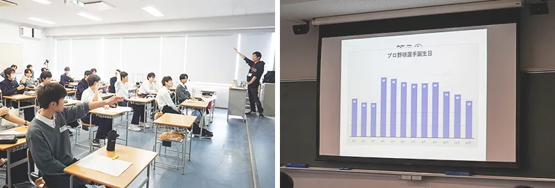 「実は昨日、当直でした。夜は、転倒して骨折した10歳の子どもの緊急手術、朝は90歳のおばあちゃんの膝の手術をして、そのまま甲南に来ました」と、さわやかに語ります。「スポーツドクターとして、世界的な大会に出場する選手に同行することもあります」という話に、甲南生たちは憧れの眼差しを向けました。