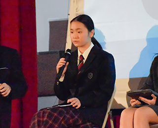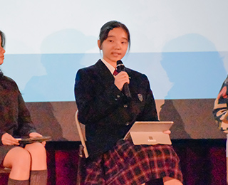 中学3年生のときに国際シンポジウムを見学。英語で堂々と留学生たちと対話する先輩たちに憧れ、高校生になった今年、国際シンポジウムの運営係に立候補しました。留学生たちとの事前ディスカッションにあくまでお手伝いの立場で参加していたのですが、積極的に発言していたら「パネリストをやってみない?」と誘われて直前に登壇することになりました。正直不安しかなかったのですが、挑戦してみることにしました。