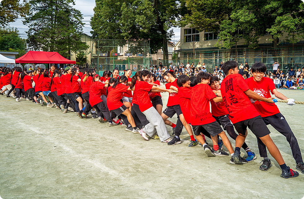 運動会は、9月後半から約2週間を練習に使います。授業の5、6時間目が応援合戦の練習になる日もあって、生徒に任せる時間が非常に多くなります。全校生で取り組み、試行錯誤を繰り返すという意味では、明星の中で最も大きな行事かもしれません。学年を縦割りにして集団を作る良さもあって、先輩の姿を見て「来年はこうなりたい」「自分ならこうしたい」と思えます。そこで生まれるつながりはとても強く、先日の合唱コンクールでは9年1組の優勝がわかった瞬間、8年1組の生徒がガッツポーズし、7年1組の生徒も大喜びしていました。それは運動会で育まれた“1組のつながり”があり、自分たちの先輩が優勝したことを一緒に喜んでいたんです。その姿を見るととても嬉しく、運動会の良さも感じます。