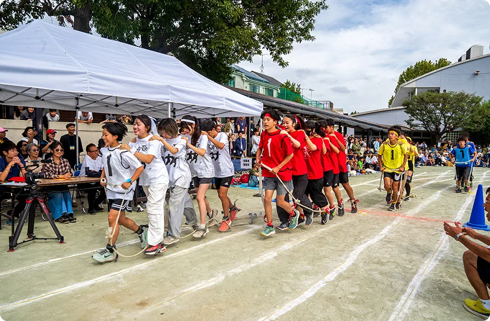 運動会は、団長・副団長といった四役による応援合戦が目立ちますが、全体を動かしているのは実行委員です。たとえば『百足競争』はクラスを6グループに分け、5~6人で1つのムカデを作ります。なんとなくやってもそのうちゴールする種目ですが、スピードを追求するために「誰を一番前にするか」「真ん中を誰にして一番後ろを誰にするか」と試行錯誤を続けるんです。そういう姿を見ると、「この子たち本気なんだな」と感じ、「できるだけ練習時間を作ってあげたい」「応援したい」と思います。