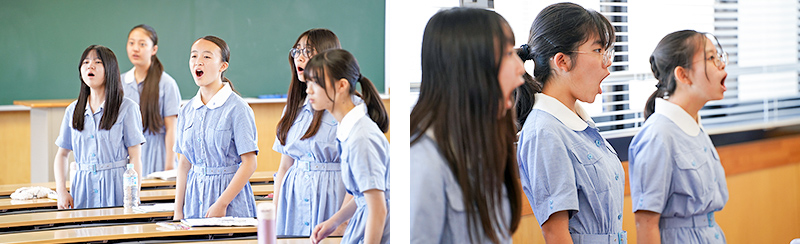 佐藤先生よると、音楽部が取り組む「筋トレ」「耳トレ」「口唇筋トレ」「表情筋トレ」「舌根トレ」の中で、特に欠かせないのは「耳トレ」だそう。さらには左右で動きが異なる「脳トレ」まで。これらが音楽部の日々の活動の基本を育んでいます。