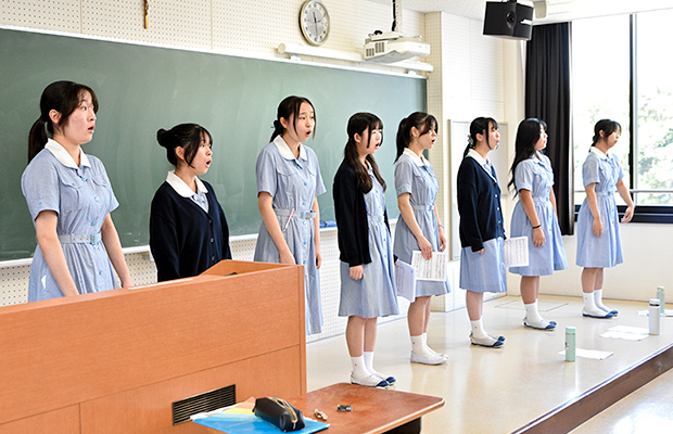 高校音楽部は、土曜日を含め週5日活動しています。通常の練習時間は1時間半です。部長としては普段の練習場所の確保や練習内容の調整を行っています。文化祭前には、他の団体との練習場所の調整も必要ですし、学外の大会へ出る際は、学校への提出書類の作成なども担当します。高校音楽部特別顧問の佐藤先生は週の2~3日を指導してくださるので、それ以外の日は練習責任者が「今日はこの部分をパート練習してから最後に全体で合わせよう」といったように具体的な指示を出して、部員だけで練習に取り組みます。練習を練習責任者が中心となって進めるのは清泉音楽部の伝統です。私は部長として、「みんなが気持ちよく部活に来て、楽しく歌えること」を大切にしています。