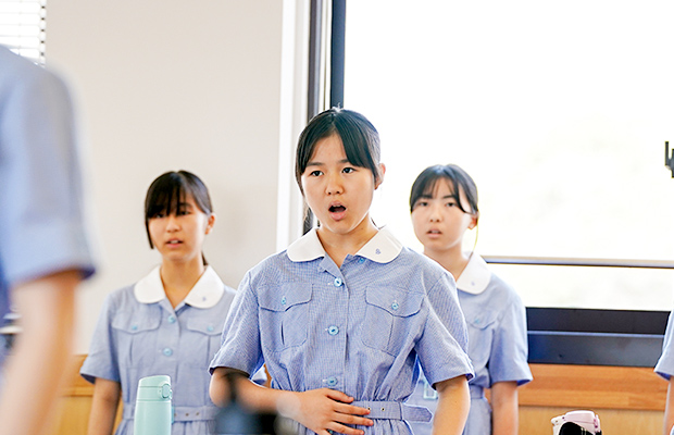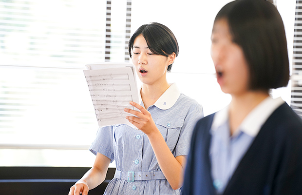 清泉は、本当に多くの経験をさせてもらえる学校です。音楽部に入ったことで様々な経験ができていますし、入部していなかった自分は想像できません。勉強との両立は大変な部分もありますが、音楽部にはそれ以上の価値があると思います。初心者でも安心して入部でき、合唱経験者はほとんどいませんから、音楽が好きな人も、そうでない人も、入部すれば音楽部の魅力を味わえると思います。それに私自身、中学受験でいくつかの学校を比較した上で清泉を選びました。学校全体の雰囲気も良いので、この学校に入学して本当に良かったと感じています。