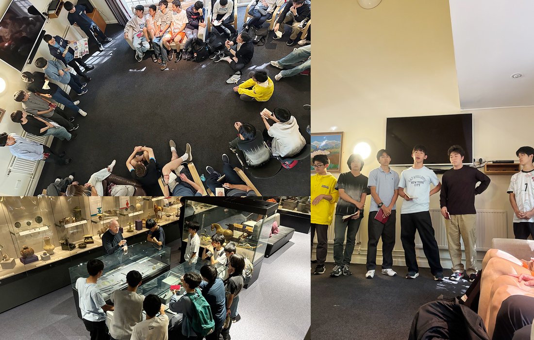 現地では、チャーリー先生、フィル先生、トリスタン先生が、「なぜこうなっているのだろう?」「これはどうしてだと思う?」と、常に生徒たちに問いかけていました。到着してしばらくは、その問いの多さに戸惑い、「そんなに聞かないで…」という反応も見られましたね。しかし、どこへ行っても「考えてみよう」と促す環境に身を置くうちに、3~4日目頃から変化が現れます。バスの車窓から眺めながら自然と「あれはなぜだろう?」と考える姿が増え、友達同士で仮説を立て、スマホで調べたり、さらに先生に質問したりと、少しずつ自分で学びを深める姿が増えていきました。