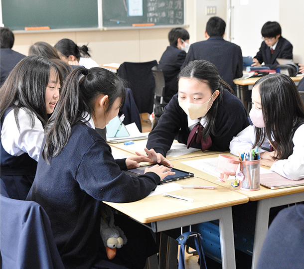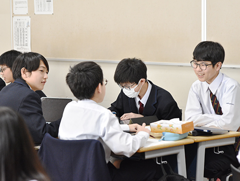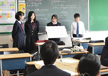 林先生すでに実践している教員もいますが、今後は学年を超えて生徒同士がつながれる授業を、さらに充実させていきたいと考えています。過去に実施した授業を紹介すると、高2生が自らの探究学習の成果を中2・中3のクラスで発表したものがありました。こういう場になると、「下級生に格好良い姿を見せたい!」という意識が働くので、高校生たちは普段以上に意欲的になり、見事なプレゼンテーションを披露します。その姿に憧れる中学生も多く、こうした取り組みは学年を超えた学びとなり、双方に良い刺激を与えられていると感じます。
