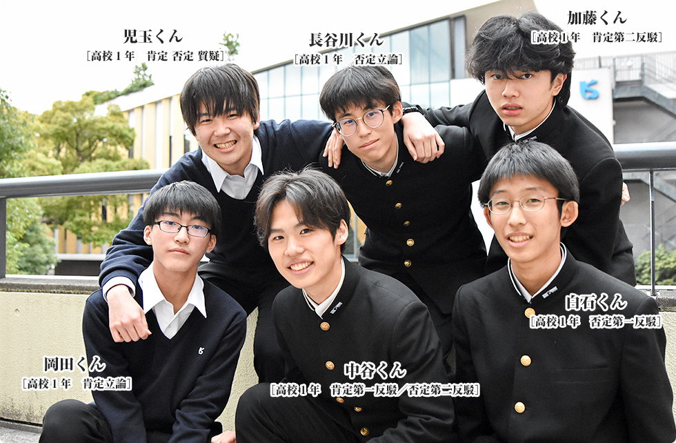 僕たちは肯定側と否定側でメンバーを分けていて、僕と白石くんは否定側です。ただ全国大会では否定側の試合は予選リーグの2試合だけで、決勝トーナメントはすべて肯定側で戦うことになりました。僕たちは「肯定側、頑張れ!」という気持ちで見ていましたが、試合を重ねて勝ち上がるのは、見ていても気持ちよかったですね。今年の論題は肯定側が不利だと言われていたので、その中で勝ち上がる姿を見て、自分たちの成長も感じました。